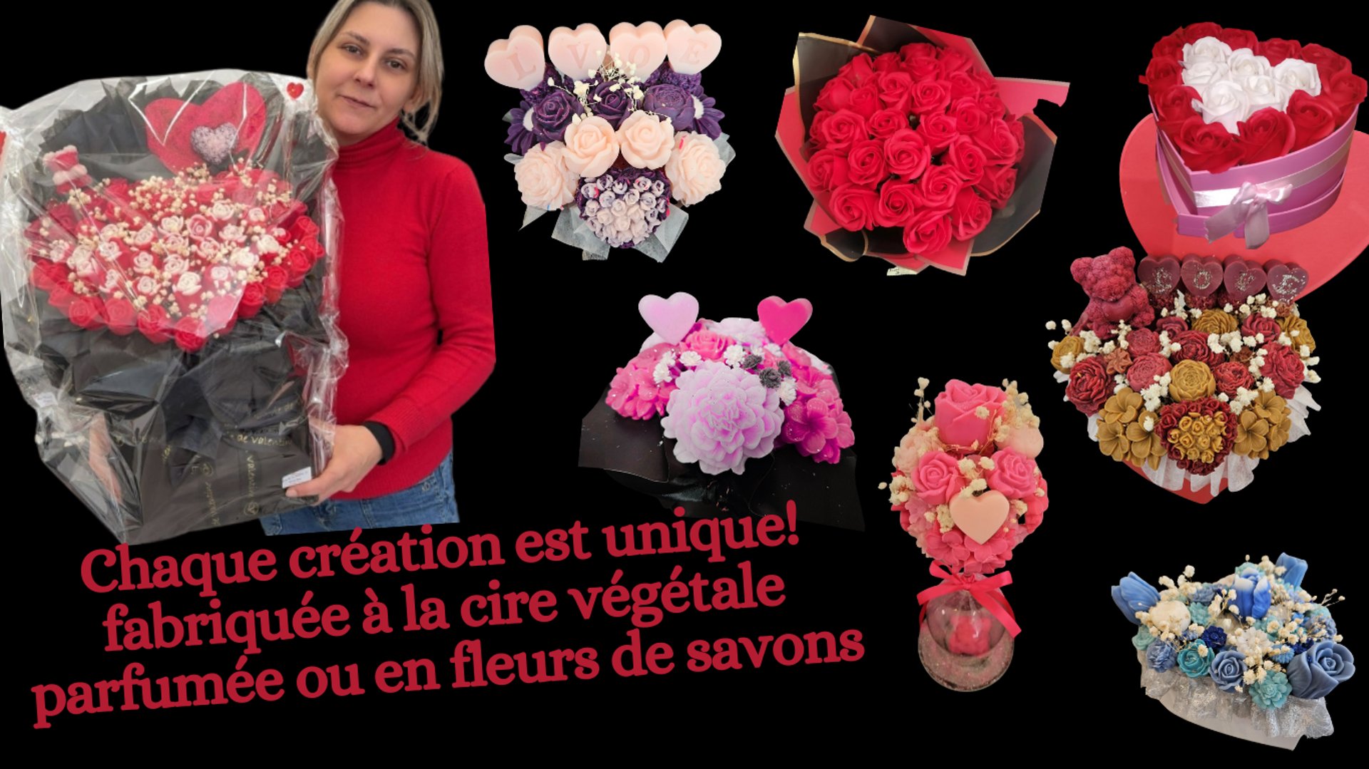 Thalyssa est spécialisée dans la fabrication à la main de fondants parfumés, de bouquets éternels en fondants parfumés, de bougies et de bouquets de fleurs en savon.